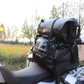 حقيبة خلفية للدراجة النارية من SINOTOP سعة 30 لترًا و70 لترًا مصنوعة من مادة البولي فينيل كلوريد بمنشار علوي مقاومة للماء تستخدم في السفر ومزودة بشعار مخصص وجودة عالية حقيبة خلفية للدراجة النارية